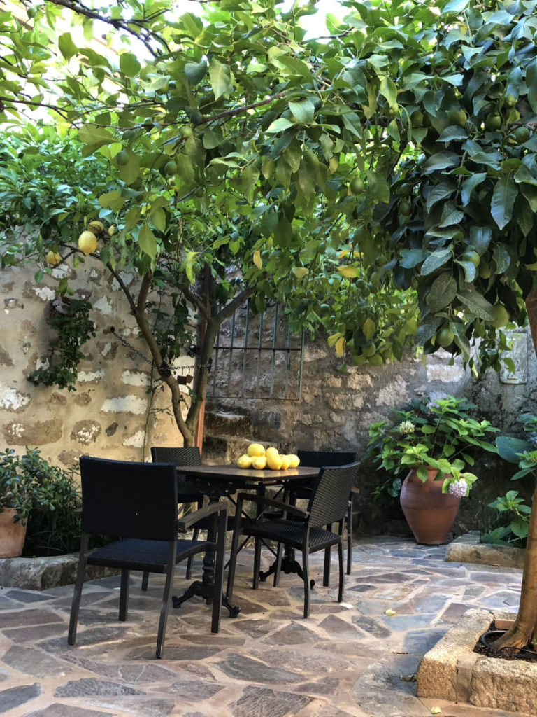 Sillas y mesas para desayunar, comer, cenar cuando el tiempo acompaña.